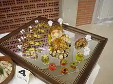 The word sausage is derived through French from the Latin Template:Lang-la, as the sausage-making technique involves placing ground or chopped meat along with salt into a tube. The tubes can vary, but the more common animal-derived tubes include sheep, hog, or cattle intestinal linings. Additionally, animal stomachs and bladders, as well as edible artificial casings produced from collagen and inedible plant cellulose or paper are also used. Inedible casings are primarily used to shape, store, and age the sausage.[4] The two main variants of sausage are fresh and cooked. Fresh sausages involve the production of raw meat placed into casings to be cooked at a later time, whereas cooked sausages are heated during production and are ready to eat at the end of production.[5]