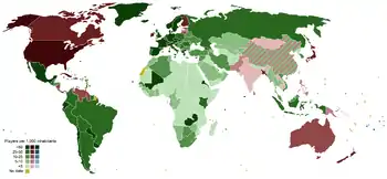 There is currently an epidemic in America regarding overeating and unhealthy lifestyles. One major concern is the rising obesity rate in young children. Children are growing without a knowledge of correct diets and exercise and by the time they mature, they have become involved in a lifestyle that is unhealthy. In comparison to other countries, America is falling behind in the movement towards a healthier world. Other reasons for this recent spike concerning obesity in America are the rapid development of technology over the past century, which has almost completely removed physical exercise from our daily routines unless one makes a purposeful effort to exercise. Some examples of technology that are blamed are the invention of automobiles, which has taken away the aspect of walking from one place to another, and the invention of the assemble line in factories, which makes, packs, and ships food in a faster and more efficient way.[21] Also from these developments we have achieved the ability to stock grocery store shelves with inexpensive, high calorie, good tasting food produced in bulk.[22] These technological developments have allowed America as a society to grow in population, while at the same time damaging the health of its own citizens.