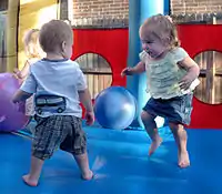 Gender differences within child's play are not consistent over time. Studies focusing on children in preschool found that girls typically develop social and structured forms of play at a younger age than boys, however, males displayed more solitary play. "During solitary play, children (ranging from ages three to 18 months) are very busy with play and they may not seem to notice other children sitting or playing nearby. They are exploring their world by watching, grabbing and rattling objects, and often spend much of their time playing on their own. Solitary play begins in infancy and is common in toddlers. This is because of toddlers’ limited social, cognitive, and physical skills. However, it is important for all age groups to have some time to play by themselves".[6] Males typically catch up to females at the next developmental stage when associated and cooperative play is the primary focus. There are a number of reasons female children have an advantage when it comes to social play. Play involves communication, role taking, and cooperation. Socio-cognitive skills, such as language and theory-of-mind, are acquired at an earlier age for females. Within the first year, females show stronger social orientation responses and facial recognition, and more eye contact. These skills translate to social competence with peers. Another reason females may appear to have a higher quality of play may be related to gendered toys. A study showed that both male and female children had the greatest play complexity when they played with toys that were stereotypical female toys, compared to when they played with neutral or male stereotyped toys.