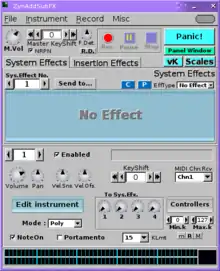 Now try clicking on the new virtual keyboard, and you should hear ZynAddSubFX making sound as before. Of course, its own keyboard still works as well.