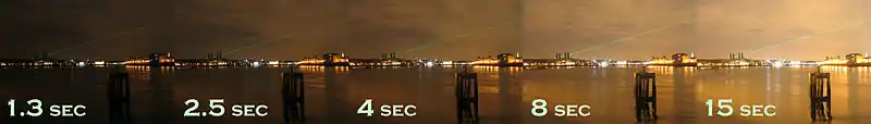 Exposure - controls the amount of light which reaches the image sensor. Exposure is measured in ev. The Aperture and Shutter work together to allow the correct amount of light into the camera. If, for reasons to be discussed later, you wish to make the shutter speed faster (letting in less light); you must compensate by having the aperture open wider (letting in more light). This relationship is known as reciprocity (as it is a reciprocal relationship). As stated in the introduction, you can feel free to play with your camera and get a feel for how this principle can be used without worrying about wasting valuable film.
