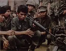 - 2. Stand the weapon butt upright on a firm surface and depress the slip ring at the chamber end of the hand guard.