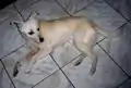 • Lie down or down: this command allows even greater control than sitting. One training method uses a treat drawn forward and down across the dog's face, forcing it to lie down to get at it. Since even people without dogs are familiar with this command and use it when dogs are bothering them, the better the dog is at it, the better it can get along with strangers and visitors. But don't get discouraged if the dog refuses or is reluctant to drop into position. The Down is a submissive position and often a dominant dog will refuse to give in.