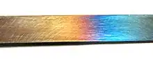 - As the heat reaches the polished face, the shiny surface will change color: first a pale straw, then a darker brown, then a bluish color (called peacock).
