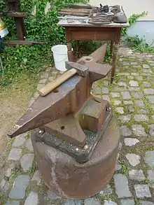 This will likely be your most expensive purchase if you have to buy it. Scrap steel prices vary, but the last time one of the authors bought such a piece of stock, scrap steel was selling at $1.50/pound. The "anvil" cost about $80.