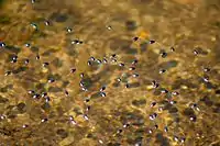 There are about a dozen species of Gyrinus in the Low Countries and we do not know for sure which one Gezelle was looking at. Himself he mentions Gyrinus natans, but that is the name of a species long extinct. He probably meant Gyrinus natator or maybe Gyrinus susbstriatus.