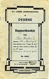 | de aardrijkskunde (v.) - geography | de gymnastiek (v.) - phys. ed. | het rapport - grade summary | het proefwerk - test | de vakantie (v.) - vacation |