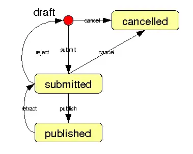 When an object is managed by a workflow, it means that it is subject to a procedure which this workflow represents. A procedure consists of some states and transitions between the states, and can be nicely represented by a graph, where boxes represent states, and arrows represent transitions. The workflow has an initial state, which the object assumes when it is created. If a transition is made, it changes its state to a destination state of the transition. Then another transition can be made, and so on until the object reaches a state from which there is no more transitions.