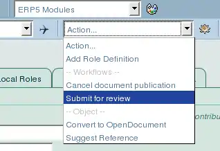 ERP5 standard interface shows the object's workflow state in the main form, and available transitions in the "Action" dropdown.