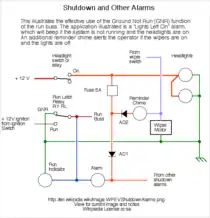 Shutdown circuit with lights on and other alarms