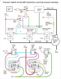 Vacuum control circuit logical and physical wiring diagrams. Click for theory of operation.