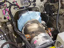 An unmodified transmission is usually not recommended for an EV conversion owing to the inefficiencies and rotational mass associated with the torque converter and a missmatch between the normal operating speeds of an ICE engine and the replacement electric motor. Furthermore, automatic transmissions typically depend on the engine's idling rotation to maintain the transmission in a ready state. Older automatic transmissions will use a considerable amount of energy to operate the transmission's oil pump. This pump produces pressure to operate hydraulic pistons that engage the clutch bands around the planetary gearsets. Some automatic transmissions have been converted by using a properly machined splined spool to replace the torque converter, in effect forming a permanent converter lock-up condition. A particular advantage to using an automatic transmission is the presence of a parking pawl, which prevents vehicle motion when the vehicle is not operating, as a supplement to the parking brake. Shifting should be performed manually at reduced throttle since there is no longer the cushioning effect of the torque converter.
