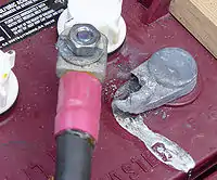 Batteries using tapered post connections are generally considered better than batteries with other connection arrangements such as vertical stud, owing to the greater contact area and less tendency to loosen in service as a consequence of plastic flow of the lead. The more expensive cable to post connections will add to the total cost, however. If the stud type is used a small amount anti-seize paste (typically used on exhaust manifold bolts) consisting of aluminum flakes in a grease carrier, should be applied to only the stud threads before assembling the connection, keeping the electrical contact area clean.