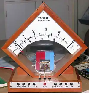 Basically an ammeter consists of a coil that can rotate inside a magnet, but a spring is trying to push the coil back to zero. The larger the current that flows through the coil, the larger the angle of rotation, the torque (= a rotary force) created by the current being counteracted by the return torque of the spring.