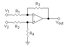 This configuration has a low input impedance. The input impedance seen by V1 is R1 as in the Inverting Amplifier. The input impedance seen by V2 is R2 + R4.
