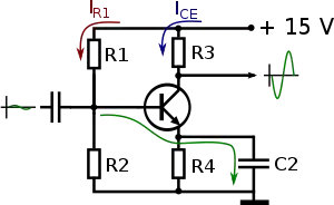 Transistor operates as a closed switch when R2 >> R1 as a opened switch when R2 = 0