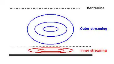 - Inner boundary-layer streaming: The study of inner boundary layer streaming was developed by Schlichting, who investigated an incompressible oscillating flow over a flat plate and calculated the two-dimensional streaming field inside the boundary layer. Figure 1 shows the inner and outer streaming in a channel. The length of such a cell is a quarter of the wave length.