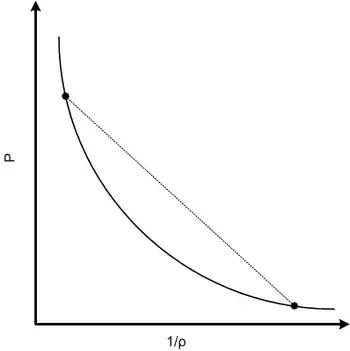 Consider again our discussion of strong and weak shocks. It was said that weak shocks are isentropic and that the isentrope represents the path through which the material is loaded from the initial to final states by an equivalent wave with converging characteristics (termed a compression wave). In the case of weak shocks, the Hugoniot will therefore fall directly on the isentrope and can be used directly as the equivalent path.