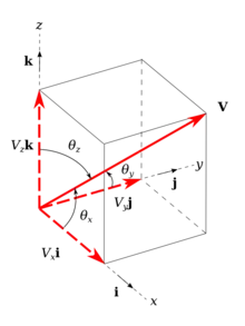 In order to describe a vector in 2 or 3 (orthogonal) dimensions, we use the unit vectors, , , and to indicate a vector's direction towards , , and , respectively (as seen in Figure 1.5).