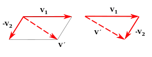 The vector difference of our two example vectors, , can be obtained using either the parallelogram law or the triangle law (see Figure 1.3) by adding and , to obtain the vector difference The equation which represents vector subtraction is as follows: