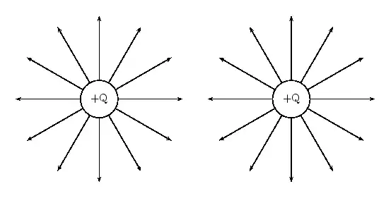 When we started making field maps we drew arrows to indicate the strength of the field and the direction. When we moved to lines you might have asked "Did we forget about the field strength?". We did not. Consider the case for a single positive charge again: