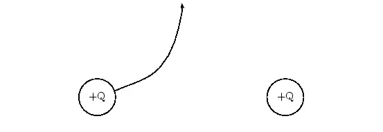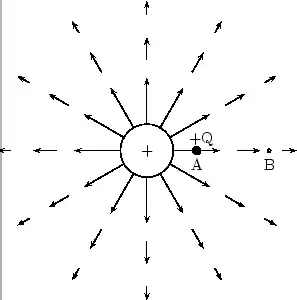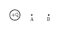 Consider a positive test charge + Q placed at A in the electric field of another positive point charge.