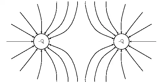 We can use the fact that the direction of the force is reversed for a test charge if you change the sign of the charge that is influencing it. If we change to the case where both charges are negative we get the following result:
