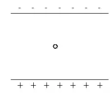 Figure 12.3: An oil drop suspended between oppositely charged parallel plates.