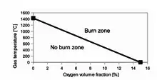 The default values for the limiting oxygen index and the critical flame temperature are 15% (volume fraction) and 1427 °C, respectively as shown in Figure media:FlameExtinctionCriteria.png.