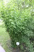 ![]() Aralia spinosa L. devil’s walking stick, Hercules’s club One distinguishing characteristic of this section is that all members bear prickles on their stems, while the species of all other Aralia sections remain unarmed.[1] The native Aralia spinosa (devil's walkingstick) is similar in appearance to the exotic invasive Aralia elata (Japanese Angelica tree). Reports of Aralia spinosa in the New York City area are probably Aralia elata.[2]