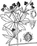| Apiaceae | Saniculoideae | Saniculeae | — | Sanicula (sanicle, black snakeroot) Eryngium (eryngo, coyote thistle) |