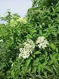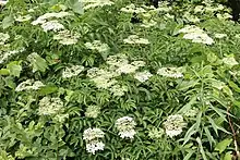 | The Adoxaceae (moschatel or muskroot family) in New York contains about 14 species of Viburnum, three species of Sambucus (elderberries), and the endangered Adoxa moschatellina (muskroot). The Adoxaceae members are often included in the Caprifoliaceae (Honeysuckle Family), and have the characteristic opposite-leaf pattern of that family.