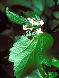 | Both sect. Lobata and sect. Opulis have leaves with somewhat of a maple-leaf shape. The native and invasive Eurasian variety of V. opulus are very similar in appearance, and some populations may be the result of introgression between the two.