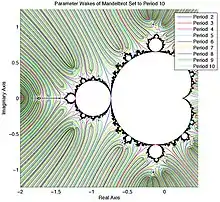 • the biggest baby Mandelbrot set has the kneading sequence AAAAAAAAAAAAAAAAAAAAAAAAAAAAAAB* corresponds to the internal address 1-31-32 . The period is 32. The smallest angles are 3/4294967295 = 0.(00000000000000000000000000000011) and 4/4294967295 = 0.(00000000000000000000000000000100)