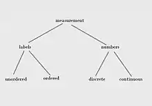 As shown in the exhibit, the fundamental data distinction is between numbers and what could be called labels.