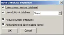 The automatic annotation feature can search a database of standard vectors (included with the GENtle package), and (optionally) a user-generated database, for feature sequences that are found in the currently opened DNA sequence. Recognized features are then annotated in the current sequence.