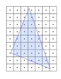 In OpenGL (ES), a pixel of the framebuffer is defined as being covered by a primitive if the center of the pixel is covered by the primitive as illustrated in the diagram to the right.