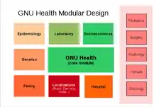 - Module: Modules are programs that provide specific functionality. GNU Health provides different modules to meet your health center needs. Example of modules are Socioeconomics, Genetics and Surgery. You should only install the modules that are actually needed for your center.