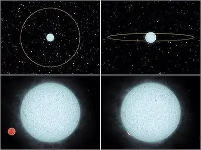 - ↑ Mayor et al. (1995). "A Jupiter-mass companion to a solar-type star". Nature 378: 355–359. doi:10.1038/378355a0