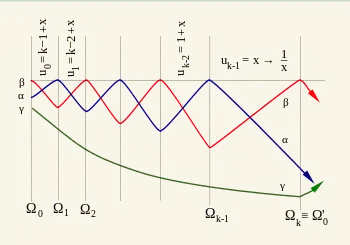 38. Fixing the limits of the era according to eq. 64 is meaningful because in such case the era contains all epochs in which the third function, γ(t) decreases monotonously. If the era is defined by the sequence of u values from k + x to 1 + x, then the monotonous decrease of γ(t) will continue during the first epoch of the next era.