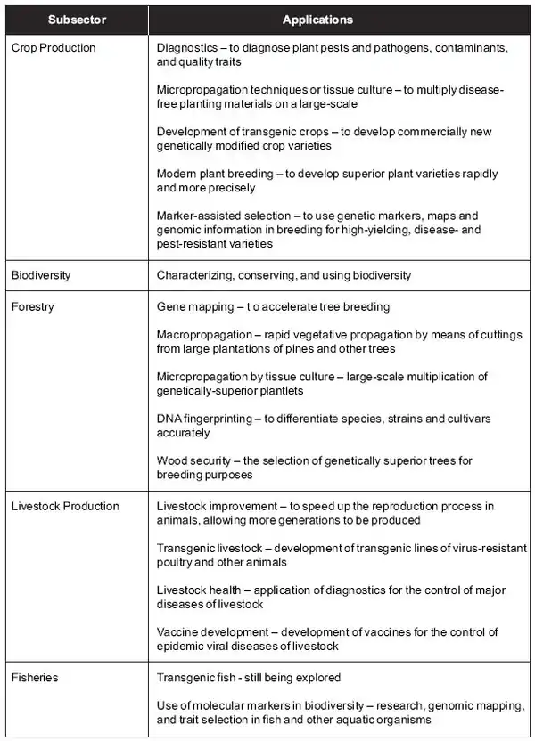 Figure 7 provides a panoramic view of other potential applications of modern biotechnology in agriculture.