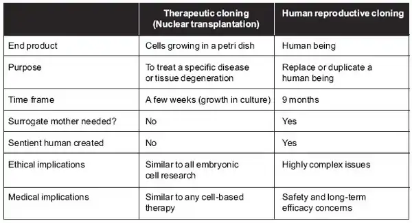 Figure 6. Comparison of Therapeutic Cloning and Human Reproductive Cloning