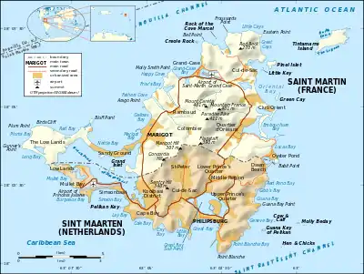 Saint Martin, or Saint-Martin in French, is the northern most of France's Caribbean territories. Saint Martin is an Overseas Collectivity of France, but until 2007 it was part of the Overseas Region of Guadeloupe.[1]