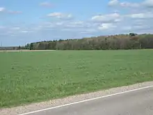 In Wisconsin, the Niagara Escarpment is called “The Ledge” that extends about 250 miles through the eastern part of the state in a Northeastern or Southwestern direction. The Ledge stretches from Waukesha county up through Dodge, Fond du Lac, Calumet, Brown, and Door county. From a few outcrops in Waukesha county then re-emerging from glacial sediment in Dodge county to steep rock ledges in High Cliff State park in Calumet county and to its highest exposures in Wisconsin rising above the west side bay of Green Bay on the Door county peninsula.[1]