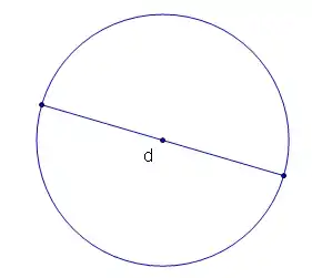 Diameter is a line segment connecting 2 points on the circle and goes through the center.