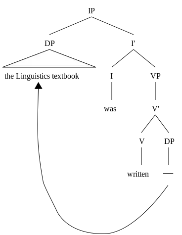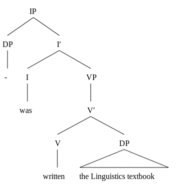 (3c) D-structure of (3b): — was written the Linguistics textbook (3d) S-structure of (3b): The Linguistics textbook was written —