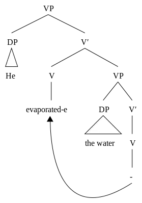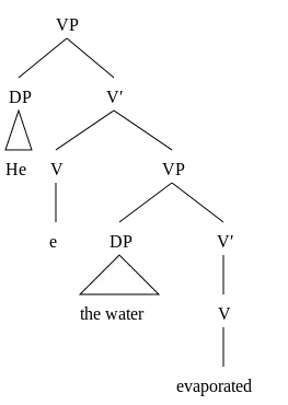 (10a) He e the water evaporated (10b) He evaporated-e the water