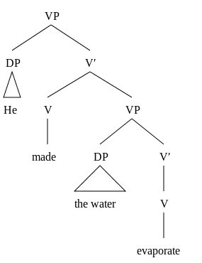 As for our (9c), the water evaporate is a VP complement of made: