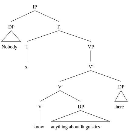 (6a) Nobody knows anything about linguistics there.