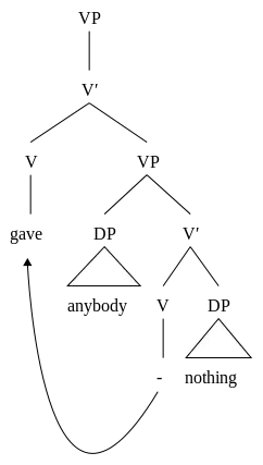 (7b) *I gave anybody nothing.